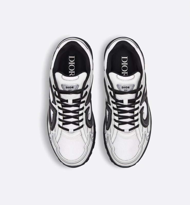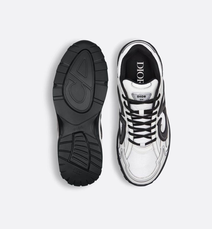 A unique take on the Dior classic, the B30 Countdown sneaker features a low-top silhouette for a sleek, sporty feel. Crafted from white mesh and technical fabric, it's finished with a reflective black CD30 logo for a more refined look. Silver-tone Dior B30 and CD30 logos on the tongue and back. The lightweight, textured-effect rubber sole is accentuated with classic details and a stretch interior for an ideal fit. Wear with a variety of casual pieces for a sophisticated look.