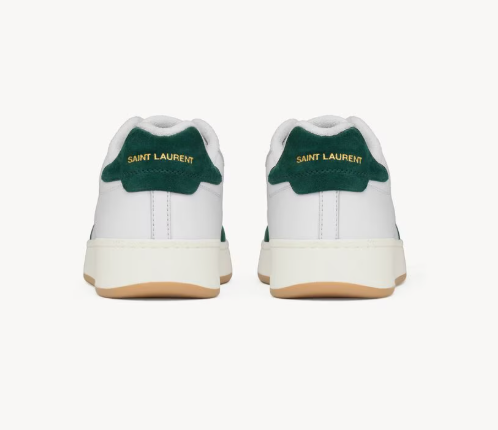 low-top laced sneakers featuring a gold-tone SAINT LAURENT signature on the side and back heel counter, and SAINT LAURENT signature patch on the tongue.